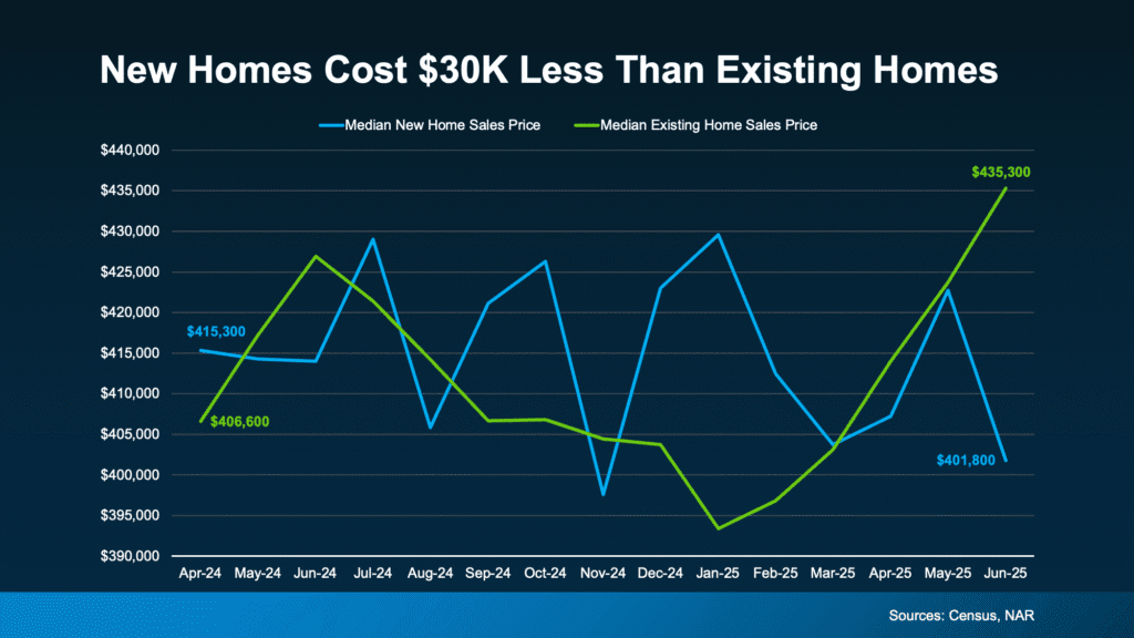 Data from Census and the National Association of Realtors (NAR) shows the median price of a newly built home today is actually lower than a home that’s been lived in already (an existing home):