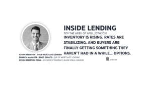 Inside Lending – Week of April 27, 2026 QUOTE OF THE WEEK “The trouble with opportunity is that it always comes disguised as hard work.”—Herbert V. Prochnow, U.S. banking executive, writer NATIONAL MARKET UPDATE New listings surged as sellers reengaged, while active inventory continued to build and asking prices softened. The spring market remains increasingly…