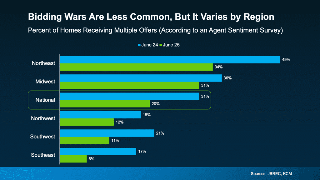 What’s behind the difference? In general, the areas still seeing bidding wars tend to have lower-than-normal inventory. That imbalance between buyers and available homes keeps pressure on prices and competition. But markets with more listings are seeing conditions cool – and that means fewer bidding wars.