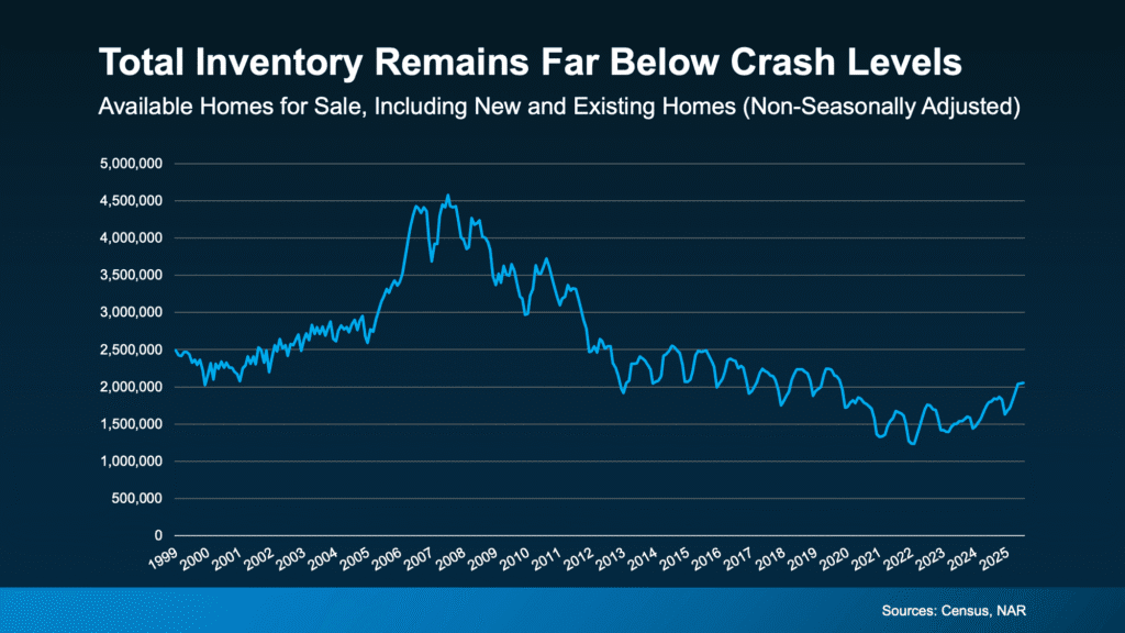 Just because there are more new homes for sale right now, it doesn’t mean we’re headed for a crash. The data shows today’s overall inventory situation is different.
