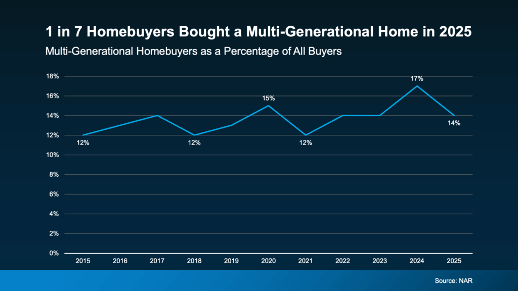 You can see it in the data. According to the National Association of Realtors (NAR), almost 1 in 7 homebuyers (14%) bought a multi-generational home in 2025 (see graph below):